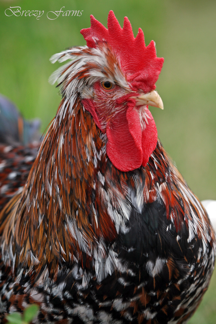 Feathering: They are known for their striking plumage, which features a mix of colors including . The feathers create unique patterns on each bird, resembling a blooming flower. Depending on the line, they may have crests. Breezy Bird Farms breeds both crested and non Crested Swedish Flower.
