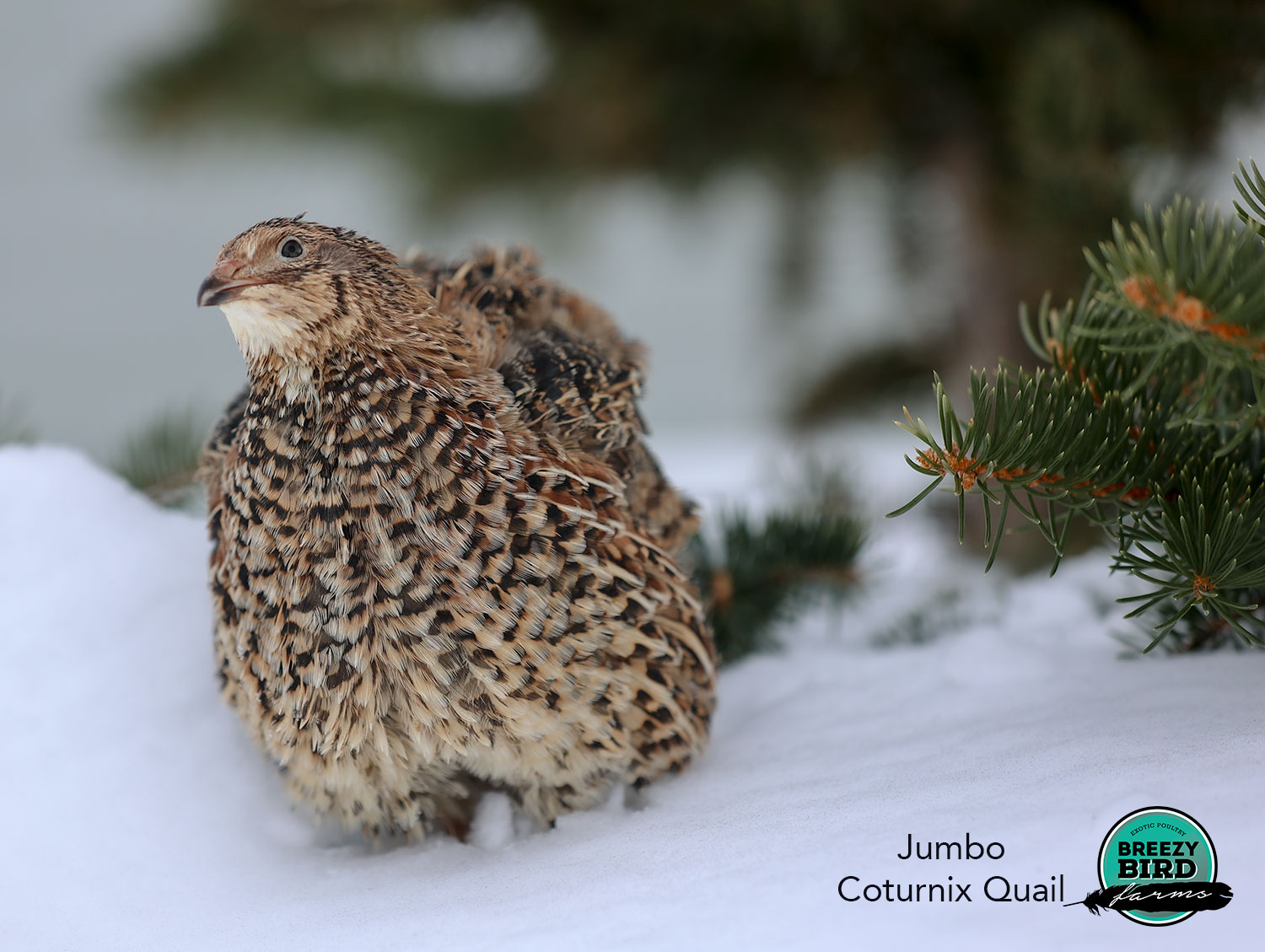 The Jumbo Coturnix quail, also known as the Jumbo Japanese quail, is a domesticated breed of quail that originated from the wild Coturnix japonica species. This breed was developed in the mid-20th century in Japan and later introduced to the United States. The Jumbo variety has been selectively bred for size and meat production, making it a popular choice for both meat and egg production.